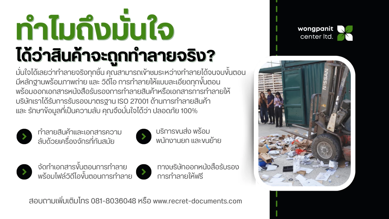 ☢️ บริการรับทำลายเอกสารความลับ และ สินค้าลิขสิทธิ์และสินค้าเสื่อมสภาพ ฟรี!♻️