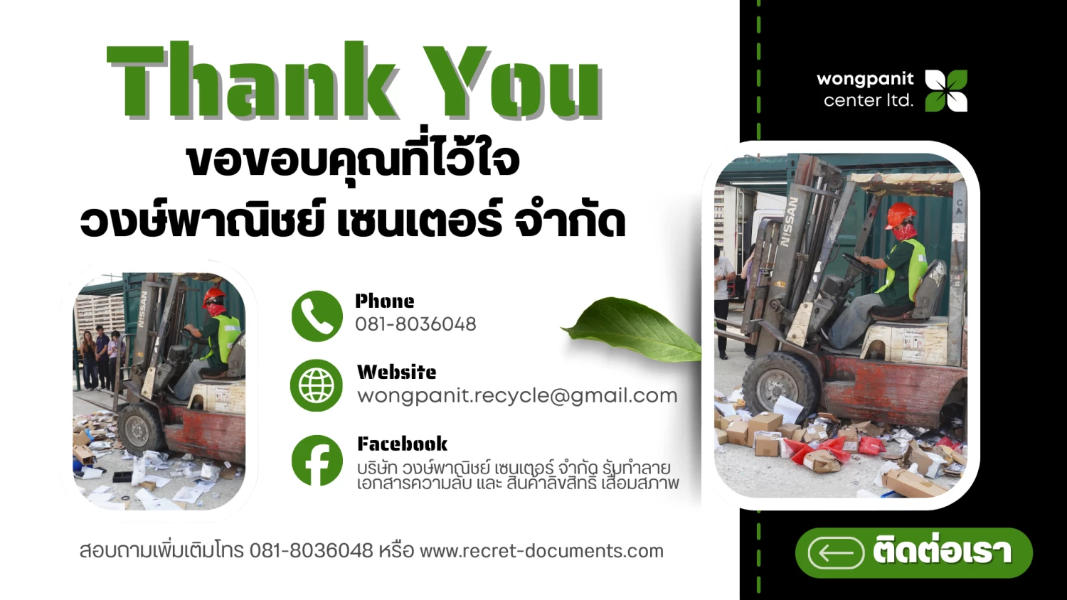 ☢️ บริการรับทำลายเอกสารความลับ และ สินค้าลิขสิทธิ์และสินค้าเสื่อมสภาพ ฟรี!♻️ บริษัท วงษ์พาณิชย์ เซนเตอร์ จำกัด เป็นผู้ดำเนินการรับทำลายเอกสารความลับ ให้กับ... บริษัท รักษาความปลอดภัย ไทยซีคอม จำกัด ประจำปี 2569 🙏🏻ขอขอบคุณ ที่มอบความใว้วางใจให้ บริษัท วงษ์พาณิชย์เซนเตอร์ จำกัด (สำนักงานใหญ่) ดูแลเรื่องการทำลายสินค้าลิขสิทธิ์และเสื่อมสภาพ มาอย่างยาวนาน และเสมอมา..